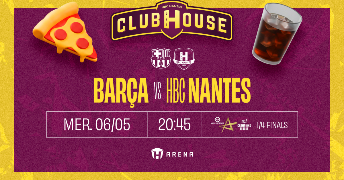 💥 Mercredi 6 mai à 20h45, le HBC Nantes se déplacera au Barça pour son 1/4 de finale de Ligue des Champions. Après le match aller à la H Arena, il ne restera que 60 minutes en Espagne pour tenter d'aller décrocher un 4ème Final 4 à Cologne.