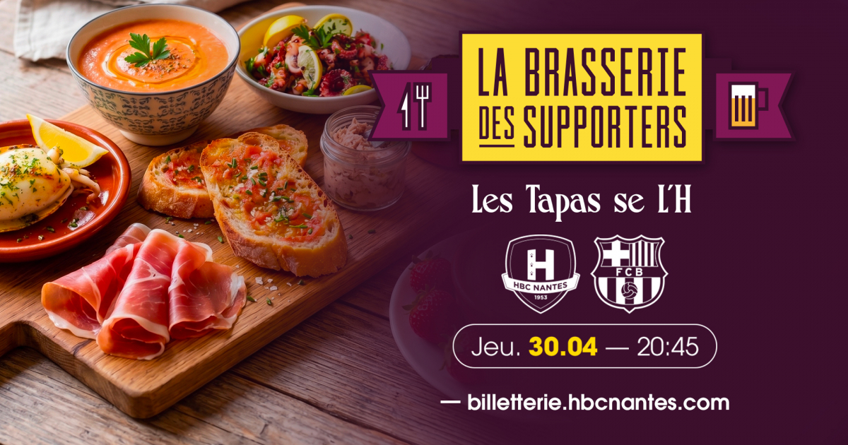 À l'occasion du match face au Barça, jeudi 30 avril à 20h45, les Tapas se l'H à la Brasserie des Suppporters 😉